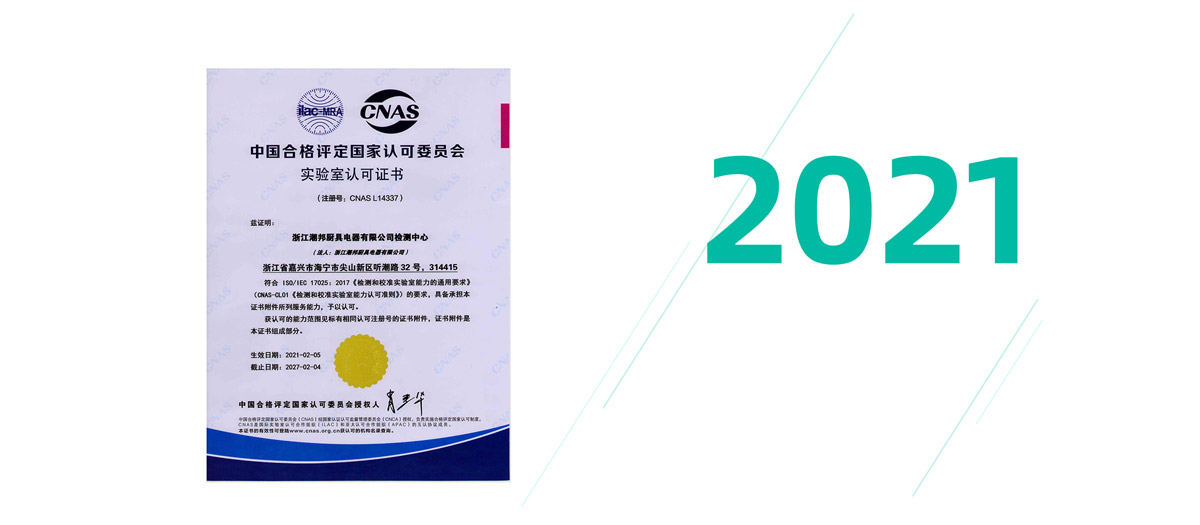 2021.2潮邦集成灶榮獲CNAS實驗室認可證書