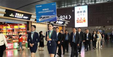 4月27日,潮邦集成灶品牌高鐵冠名首發儀式在長沙南站舉行! 浙江潮邦廚具電器有限公司董事長張金祥,永達傳媒副總裁蔡俊,潮邦