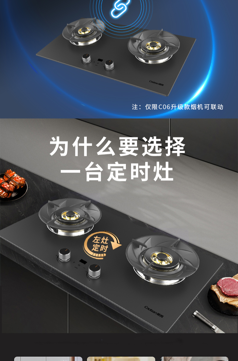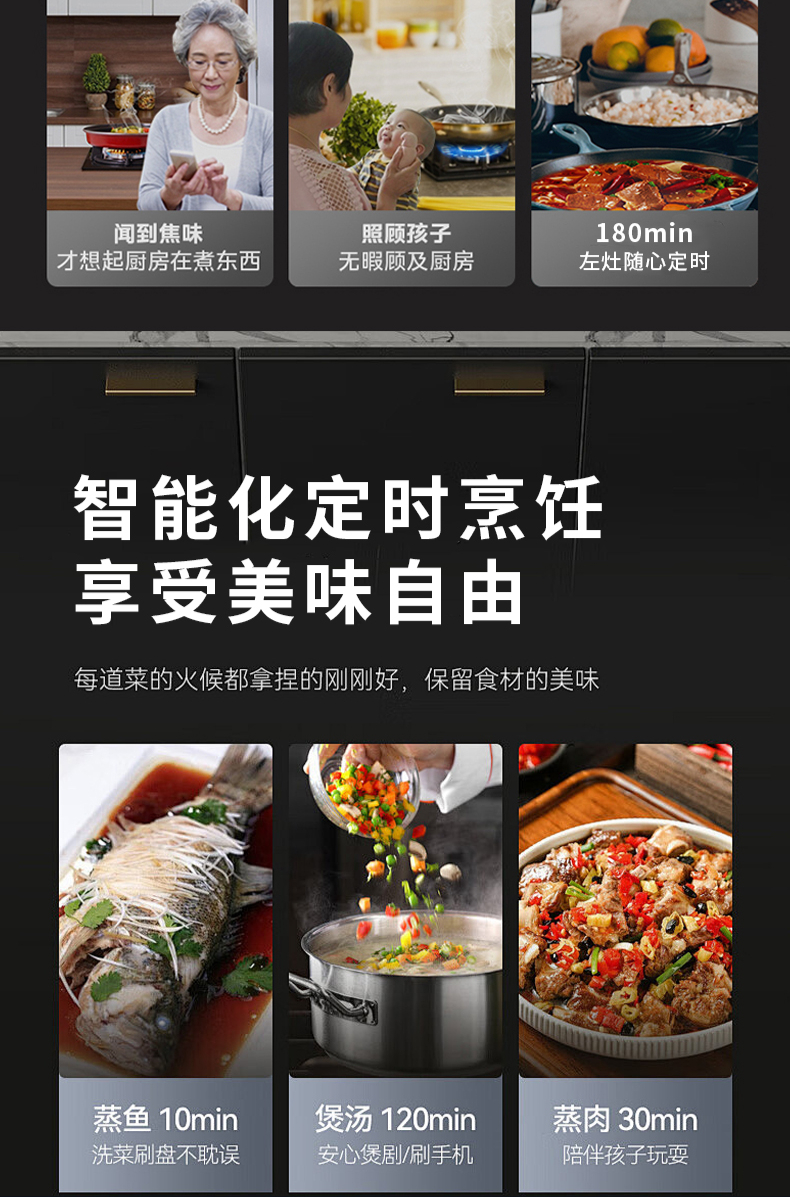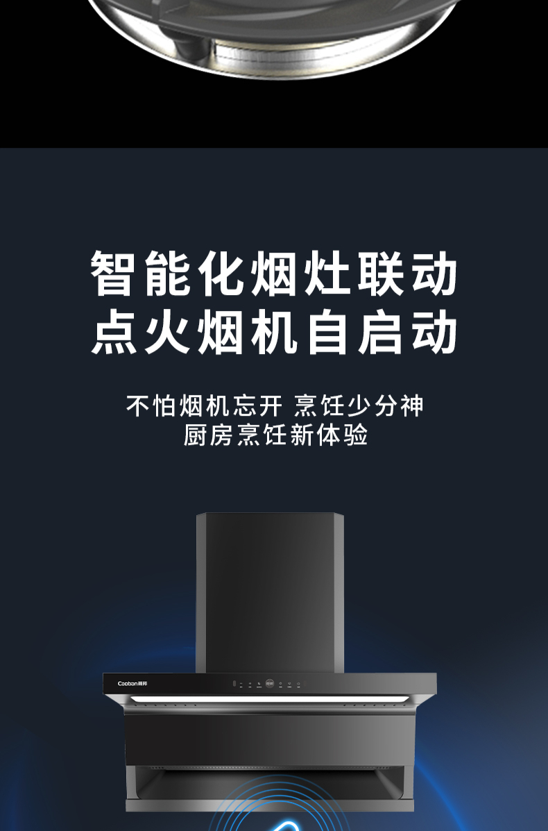 大火力,70%熱效率;智能煙灶聯動;全銅燃燒器;完全可拆分設計;主動熄火保護;
