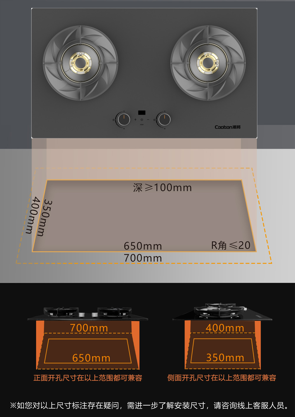標準開孔尺寸(mm):