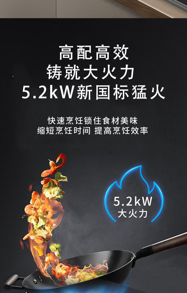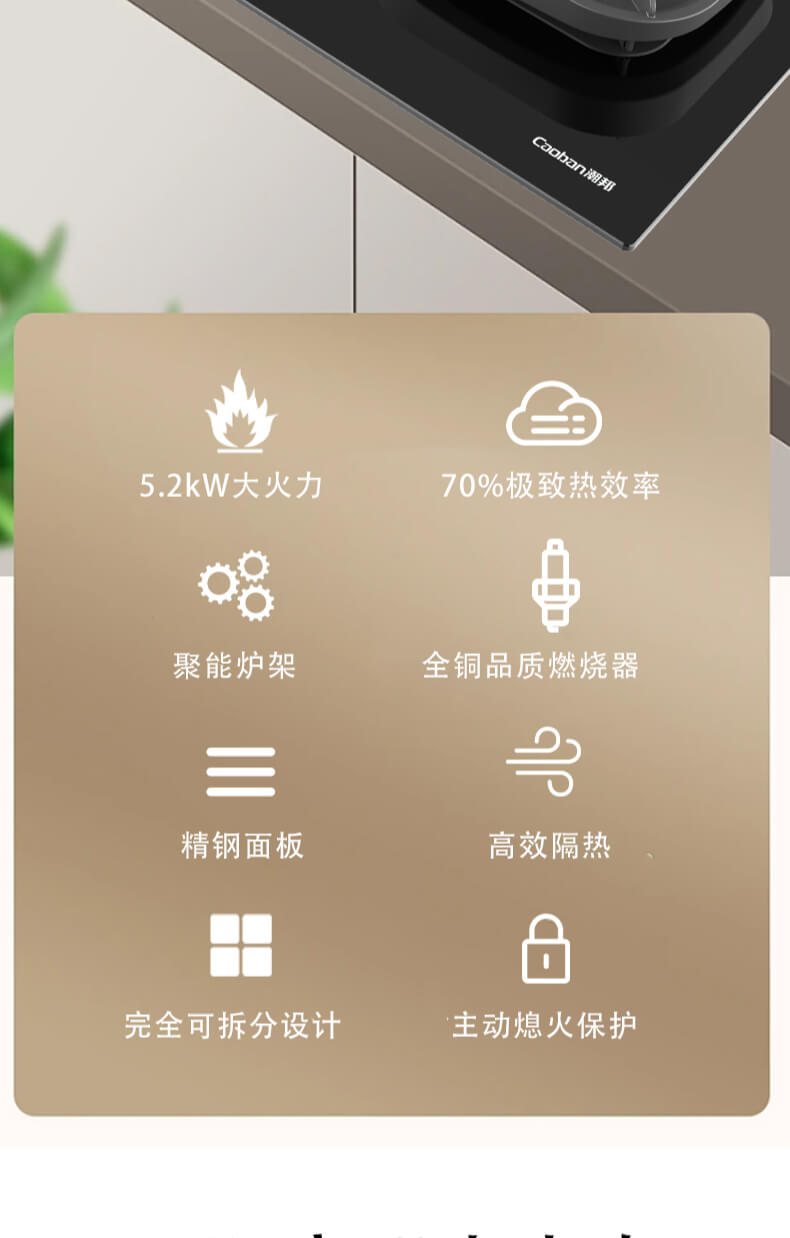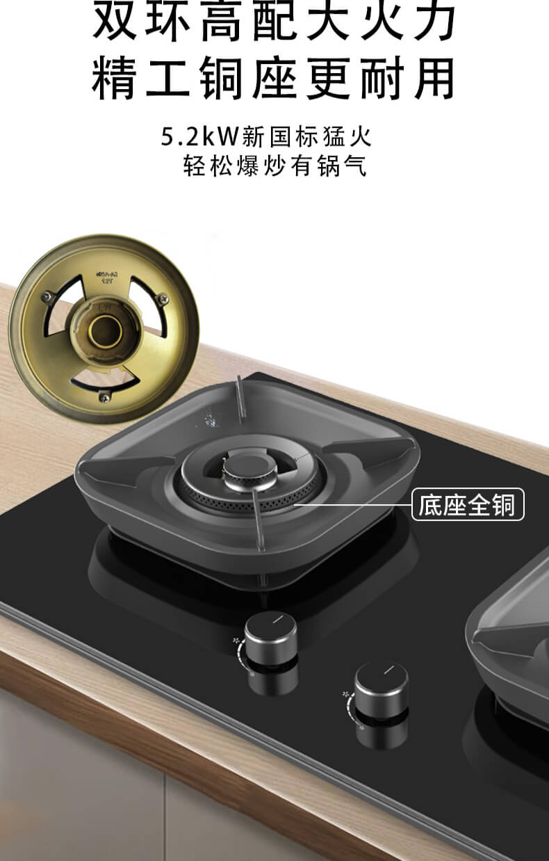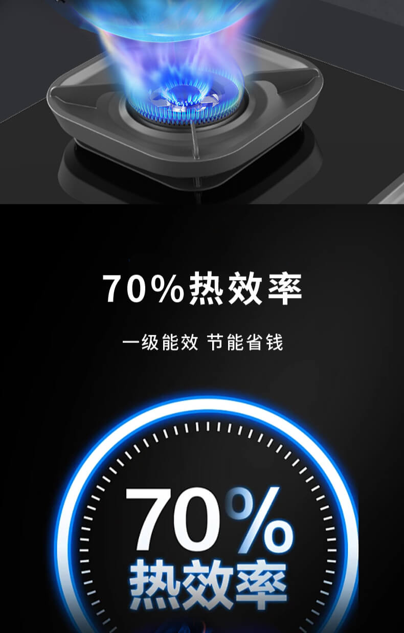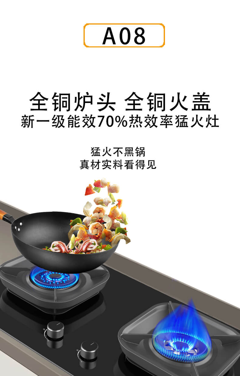 全銅爐頭,全銅火蓋。新一級能效70%熱效率猛火灶。