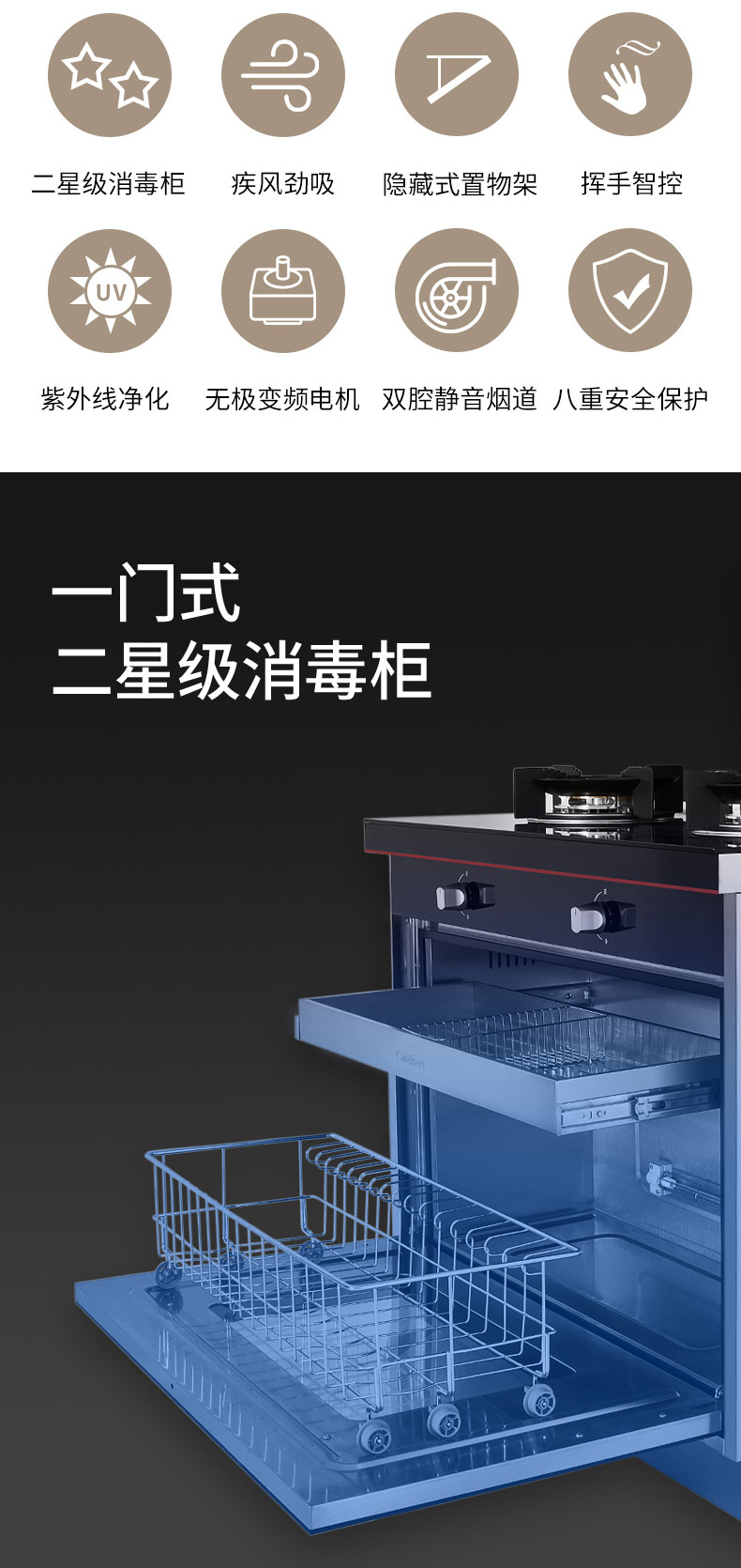 2星級消毒柜,隱藏式置物架,揮手智控。
