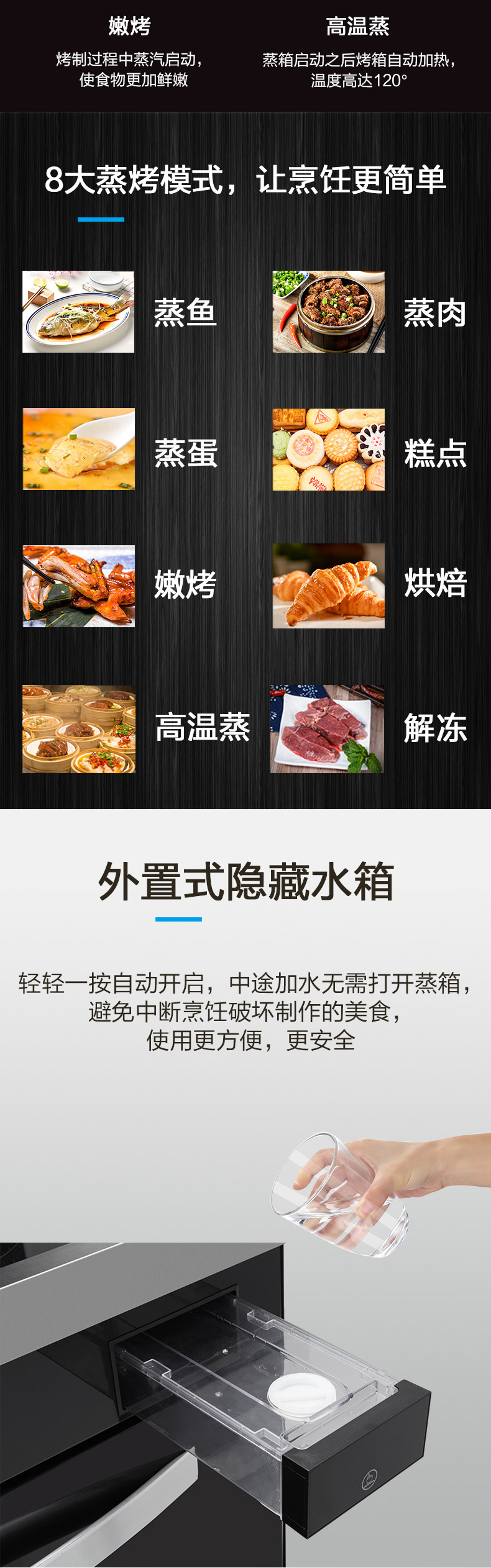 烤箱溫控范圍: 0-200℃ 蒸箱溫控范圍: 0-100℃